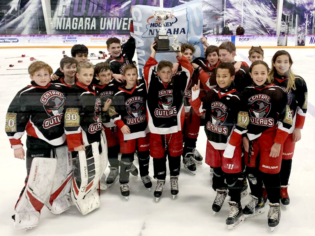 The Finger Lakes Regional Hockey Association announced the Central Outlaws hockey team won the Tier III New York State Hockey Championship this past Sunday in the 12 and under division. The team’s win at Niagara University capped off their impressive 26-3-0 season, which included winning tournament championships in Pittsburgh and Philadelphia, PA this year.